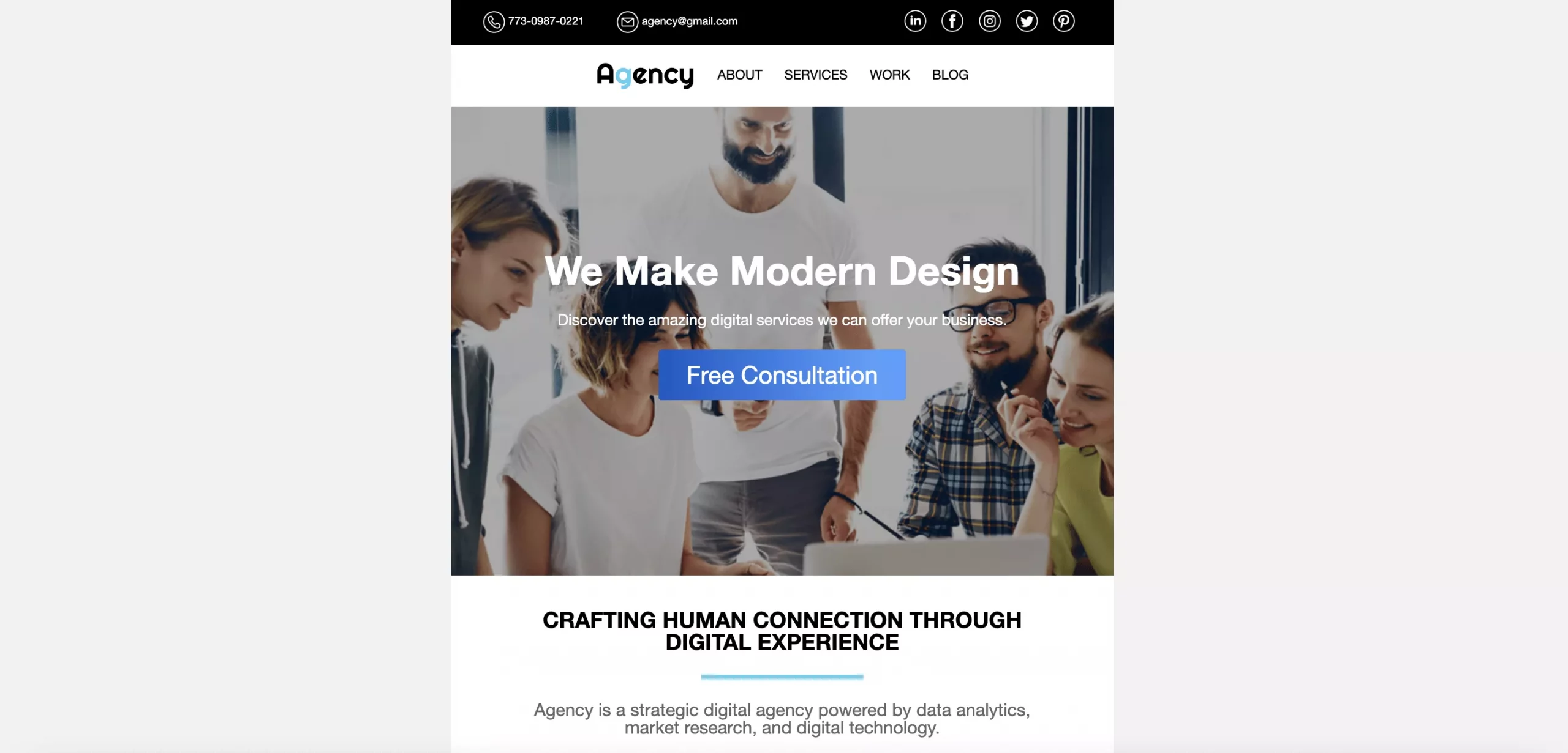 Developed a marketing email using html and css for a Digital Agency.