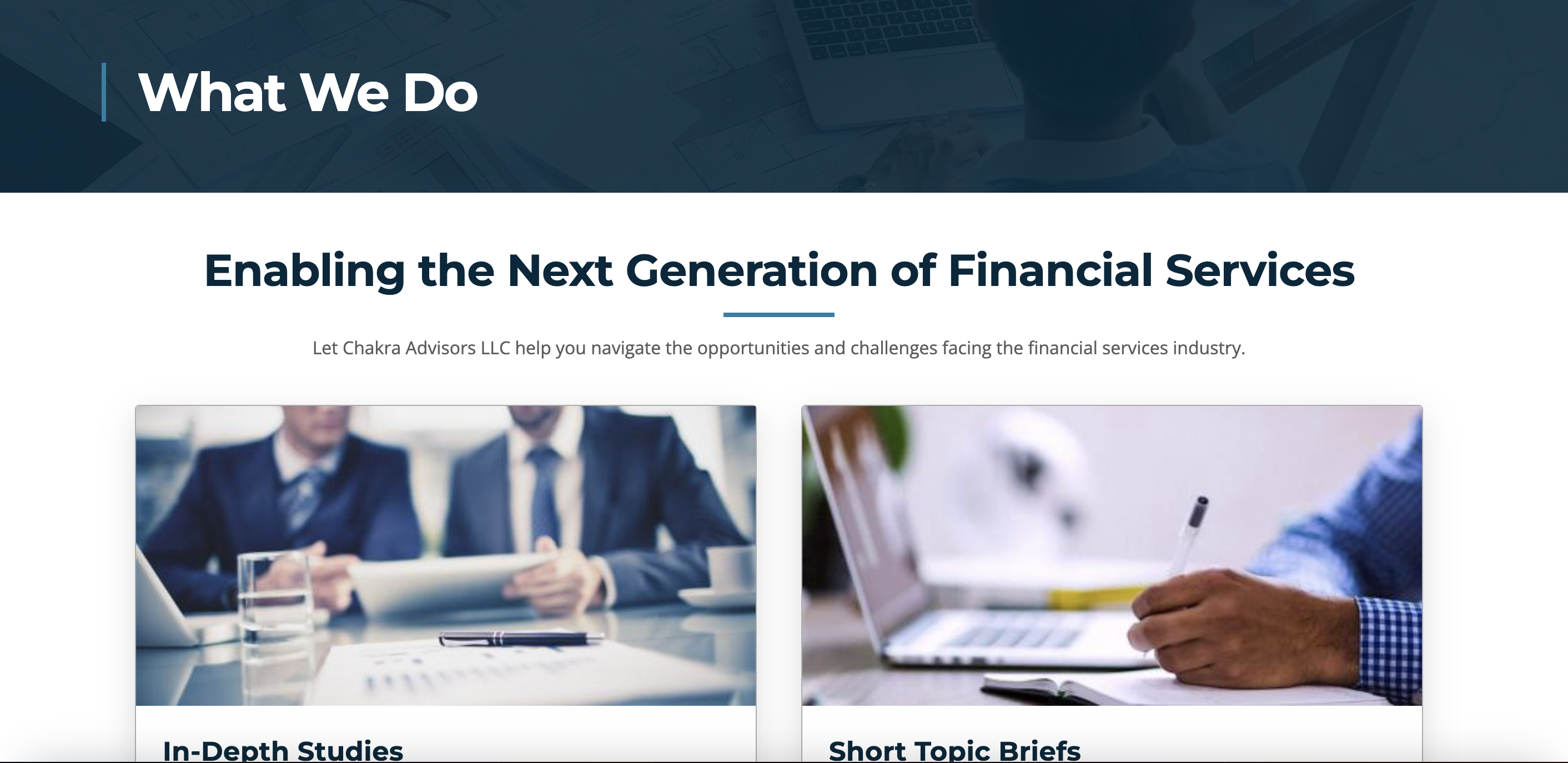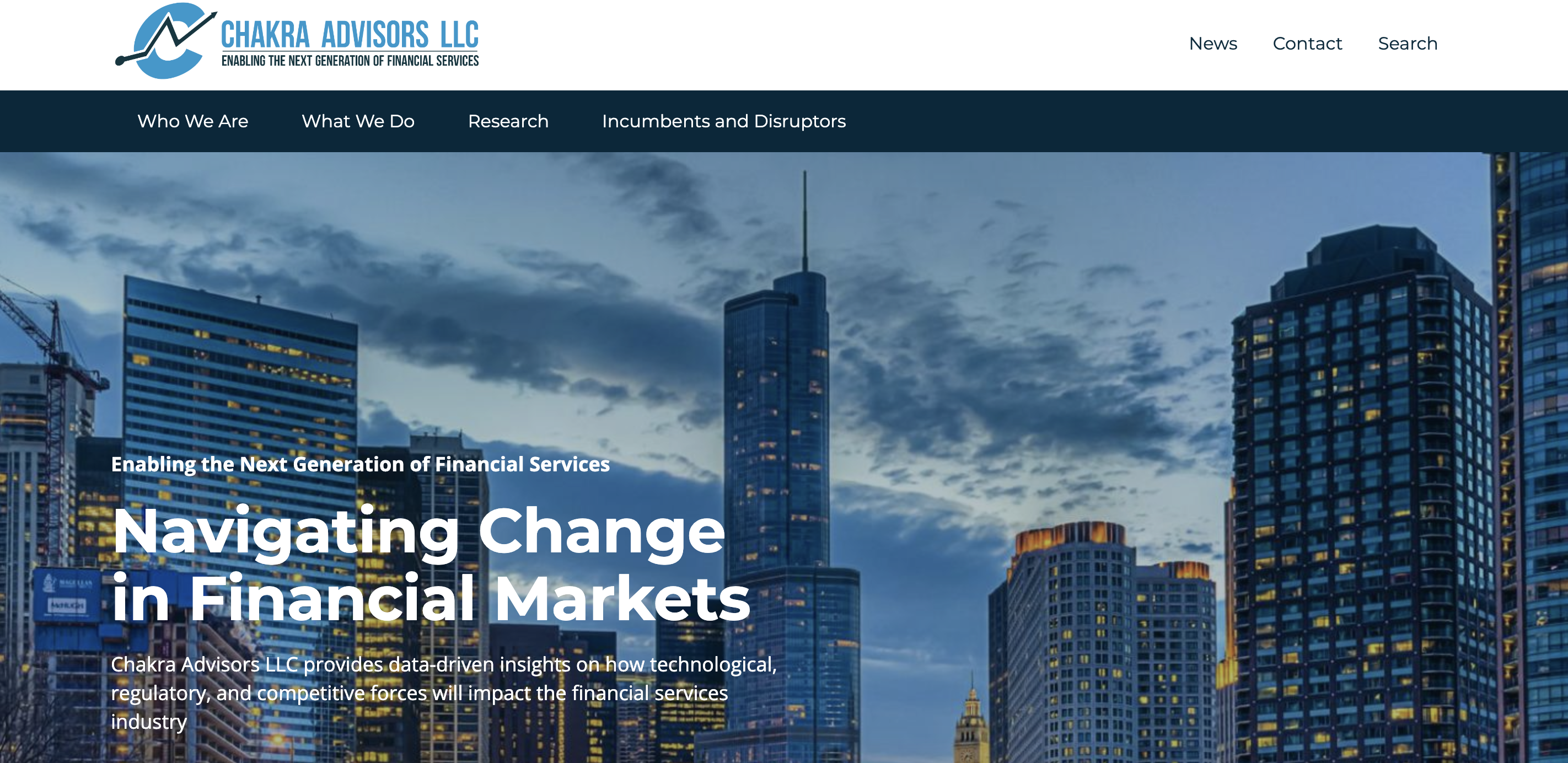 The creation of the Drupal project website, chakradvisors.com, was undertaken by a team of students as part of our senior college capstone class. Our goal was to design and develop a professional and user-friendly website that effectively showcases the services offered by Chakra Advisors.