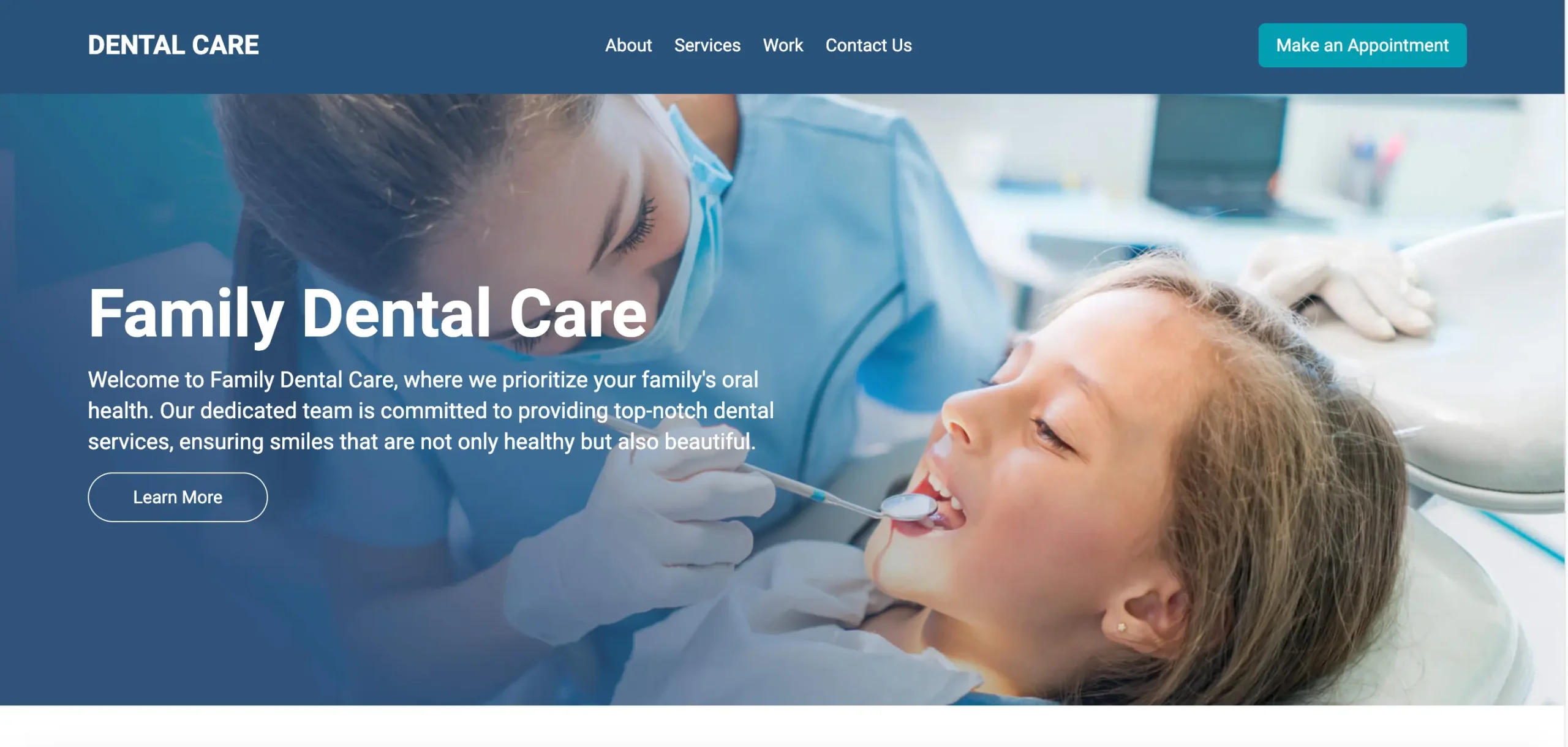 Developed a landing page theme tailored for professional dentists and their dental care services. Using HTML, Tailwind CSS, and JS, I've created a showcase that professionally highlights a dentist's work.