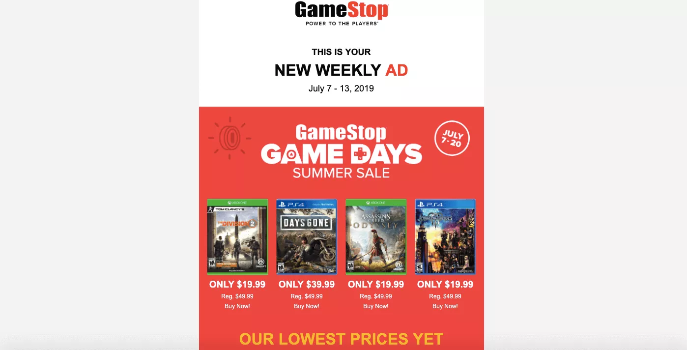 Created a GameStop email using foundation framework for faster and more efficient development.